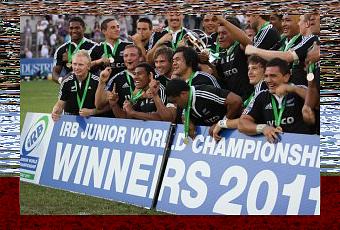 I Baby Blacks festeggiano la conquista degli IRB JWC 2011 dopo la vittoria in finale sull’Inghilterra allo stadio “Plebiscito” di Padova