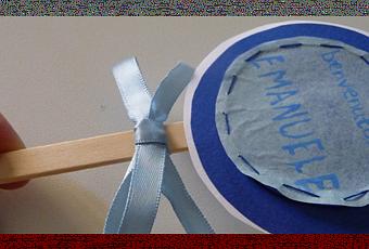 Finalmente oggi vado a trovare Sara, una mia carissima amica che da poco, pochissimo è diventata mamma di Emanuele; finalmente potrò rivedere lei e conoscere il suo piccolino, sono emozionata! Per l’occasione ho voluto prepararle un bigliettino simpatico a forma di “lecca-lecca”; ovviamente ho utilizzato SOLO materiale di riciclo e per l’esattezza cartoncini, carta velina e stecchini del gelato.I cartoncini li ho utilizzati per creare il “lecca-lecca” che ho deciso di fare in forma rotonda; ho quindi ritagliato 2 cerchio di dimensioni diverse in maniera che uno stia dentro l’altro. Esternamente ho lasciato il cerchio grande, bianco mentre internamente quello più piccolo, blu; ho ritagliato anche un cerchio più piccolo sulla carta velina azzurra nel quale andrò a scrivere un pensierino. Come ho fatto? Semplice, ho utilizzato uno stuzzicadente come se fosse una penna intingendolo nella tempera blu così da creare tono su tono. Ho incollato uno dentro l’altro i cerchi per poi attaccare il tutto allo stecco del gelato; lo stecchino del gelato mi servirà come sostegno del “lecca-lecca” e per decorarlo ci ho messo un fiocco, ovviamente azzurro. Adesso lo adagerò sopra i regalini che ho preso per il piccolo Emanuele ma prima… vado a creare una simpatica carta regalo e poi… corro a conoscerlo!