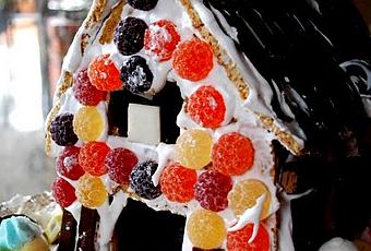Una volta terminata la "costruzione" spalmo la casetta di glassa e poi la decoro con caramelle colorate.