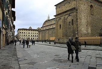 Le strade sono libere, e la vista sulla basilica di San Lorenzo si fa suggestiva.