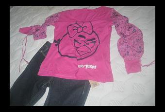 Reparto donna, ci piace la linea Baby Angel. Ci siamo fatte attrarre dall’insegna gialla, Tutto a partire da 3 euro, abbiamo trovato qualche capo spalla che indosseremo in qualche occasione particolare, ma per il nostro obiettivo del giorno ci siamo portate verso il cartello Tutto a partire da 5 euro e ci siamo trovate di fronte a un assortimento di jeans tutti a 5 euro, la maggior parte della linea Baby Angel, modelli skinny, vita bassa o gamba a tre quarti. Ne abbiamo scelto uno, poi, abbiamo cercato l’abbinamento ideale, una tshirt Angry Birds color Rosa shocking, con maniche lunghe in tulle a stampa Angry Birds. Ed