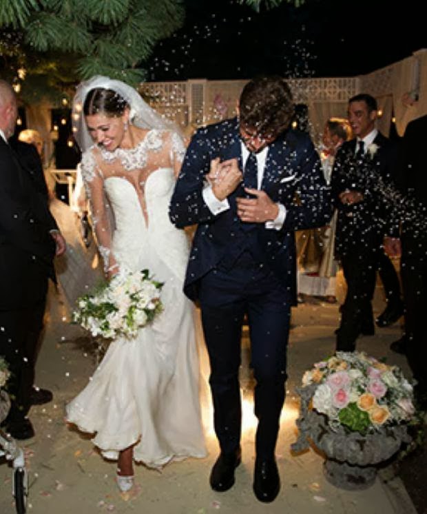 Non amo parlare di gossip, soprattutto quando la protagonista in questione è Belen Rodriguez ma ho ritenuto opportuno parlare del lato ''modaiolo'' di questo grottesco matrimonio. A prescindere dalle parole pronunciate dal parroco dopo le nozze (che a mio parere sono state da pelle d'oca) non riesco a capire come una donna, bella e affascinante, come la showgirl più famosa d'Italia voglia mostrare in tutti i modi la sua bellezza. Mi spiego: il 90% delle ragazze ha la decenza di arrivare all'altare con un abito accollato o che accenni una sobria scollatura in segno di rispetto per il sacramento che si sta per ricevere. La Signora Di Martino ne era al corrente? O credeva di essere ad un reality? Per me bastava scegliere un vestito più semplice e lineare che disegnava le forme della sposa senza però esagerare. Bella l'acconciatura, anche se a mio parere i fiori dovevano essere evitati vista la ricchezza dell'abito.