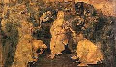 Eccoci arrivati alla settimana che precede il Natale. Non so voi, ma a me personalmente ogni 8 dicembre comincia a risuonare nella testa "Astro del Ciel" e confesso che continuo a canticchiarla fino alla Befana, con buona pace di chi mi sta accanto.Il prossimo Natale non mi vedrà immersa nelle scorpacciate col parentado al completo, ce ne staremo buoni buoni a casa a sorvegliare la varicella di mio figlio. Con lui stiamo passando in rassegna ogni tipo di libro illustrato, cercando di condire le immagini con qualche giochetto, tanto per non farlo annoiare troppo o pensare alle bolle!Mi è venuto in mente quindi di fare un gioco, un piccolo quiz artistico, per ripassare gli artisti che abbiamo incontrato fino a questo momento.Le opere scelte, neanche a dirlo, sono sei diverse versioni del "presepe", ovvero di natività e adorazione dei magi.