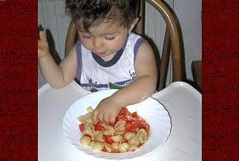- Tenere il punto. Che fare? La brava mamma non si smuove dalle sue posizioni. O mangi questa minestra... letteralmente. La mamma tipo Suster cede. Sistematicamente. Ok, questo non lo vuoi, ma ti protendi spasmodicamente verso il pane che troneggia bello in mostra sulla tavola apparecchiata della cena. To', assaggia. E alla pupa piace. Vuoi assaggiare un melanzana dal piatto di mamma? Ecco. E alla pupa non piace, e non me ne chiederà ancora. Ovvio: qui occorre operare una logica limitazione; è chiaro che la bistecca di manzo alla griglia non la farò assaggiare alla pupa, la quale non ha ancora ricevuto gli strumenti adatti alla sua riduzione in poltiglia, ma perché no la scaloppina di pollo farina e limone? E' chiaro che non ne mangerà mezzo chilo, ma giusto qualche pezzettino. Che danni irreversibili potrebbe causare al suo piccolo organismo. fatto sta che la pupa, notoriamente coriacea, finora non ne ha riportati.