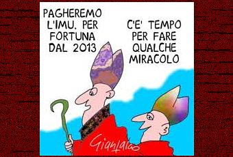 Il Consiglio di Stato ha bocciato il decreto del ministero dell'Economia e Finanze perl'applicazione dell'Imu sugli enti non commerciali, e quindi anche sulla Chiesa. Due le strade percorribili, a questo punto, per rimediare: emanare subito una norma ad hoc che modifichi l'articolo 91-bis del Dl 1/2012 e affidi al ministero dell'Economia la disciplina dell'intera materia attraverso un suo decreto; oppure inserire l'intero regolamento in un disegno di legge. Ma in questo caso i tempi tecnici sarebbero più lunghi"Non è demandato al Ministero - scrivono i giudici di Palazzo Spada - di dare generale attuazione alla nuova disciplina dell'esenzione Imu per gli immobili degli enti non commerciali. Sulla base di tali considerazioni deve essere rilevato che parte dello schema in esame è diretto a definire i requisiti, generali e di settore, per qualificare le diverse attivita' come svolte con modalita' non commerciali. Tale aspetto esula dalla definizione degli elementi rilevanti ai fini dell'individuazione del rapporto proporzionale in caso di utilizzazione dell'immobile mista "c.d. indistinta" e mira a delimitare, o comunque a dare una interpretazione, in ordine al carattere non commerciale di determinate attività".NELLA VIGNETTA DI GIANNELLI A QUANTO PARE IL MIRACOLO è ARRIVATO