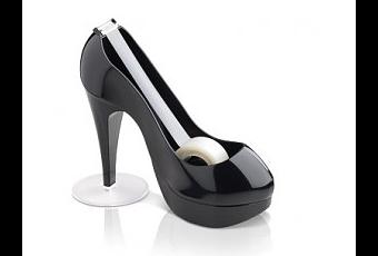 Si si avete capito bene una mini scarpa con tacco vertiginoso, in un elegante colore nero, da poter sfoggiare sulla propria scrivania, quale simbolo di eleganza e femminilità, con tanto di rotolo dello scotch inserito e pratico lato per tagliarlo: un simpatico e pratico dispenser scotch a forma di scarpa con tacco!