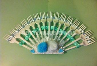 Un matrimonio originale e una sposa stravagante... non poteva di certo mancare qualcosa di divertente per coronare l'evento!!!!Per la sposa che "sognava" un ventaglio, eccone uno realizzato apposta per lei!!! Ho utilizzato delle forchette di plastica incollate sua una base di cartoncino rivestita successivamente con del feltro bianco e tulle abbellita con roselline in tulle e cuoricini. Qualche nastro nei toni dell'azzurro, colore tema del matrimonio, e il ventaglio è pronto per sventolare e rinfrescare la sposa!!!Auguri Serenawith loveSilvia