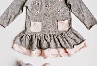 Ecco un vestitino da bimba davvero sfizioso. E' di lana e i colori sono il grigio e il rosa, due colori di gran moda per le bambine in quest'inverno, soprattutto se abbinati assieme. Ve lo ricordate? Ne avevamo parlato qui.