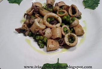 Preparazione:Mettiamoin una padella con l’olio d’oliva un trito di prezzemolo e aglio, uniamo icalamari puliti e tagliati ad anelli, rosoliamo, sfumiamo con il vino bianco,aggiungiamo i piselli e lasciamo cuocere sino a che i piselli siano teneri e icalamari cotti, eventualmente unendo un po’ d’acqua. Serviamo caldi o tiepidi.Unottimo piatto delicato, marinaro e con il sapore della primavera.