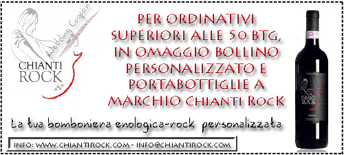 La possibilità di personalizzare le splendide bottiglie di questo particolarissimo vino è l'ideale per la creazione di bomboniere enologiche uniche nel loro genere, che fondano l'eleganza del vino, la territorialità del Chianti e la forza espressiva del Rock.Il Wedding Coupon che vi propone l'azienda di oggi, vi offre la possibilità di personalizzare gratuitamente con il bollino che riporterà nomi degli Sposi e data delle nozze (o qualsiasi altro testo o immagine) e omaggiandovi dei bellissimi portabottiglie firmati Chianti Rock.