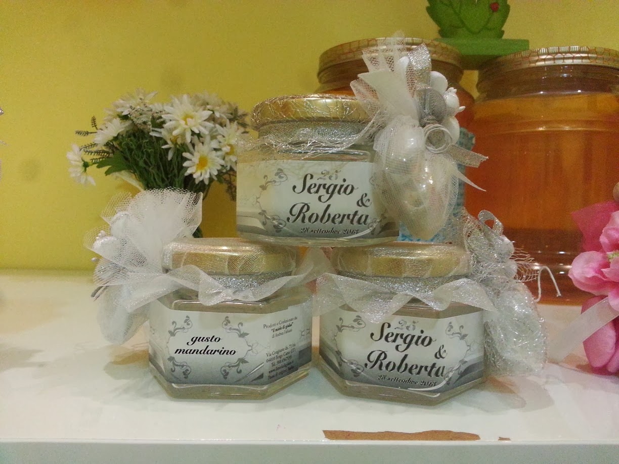 La linea di miele aromatizzato denominata "Mielfrù", sarà capace di stupire i vostri invitati per colori e sapori, donando quel giusto tocco di leggerezza e dolcezza al vostro matrimonio.Immaginate questi carinissimi barattolini personalizzati con all'interno miele al cioccolato, al caffé, alla cannella, al tartufo, alla liquirizia... sapori che sicuramente ben si sposano con il periodo invernale e con, ad esempio, le festività Natalizie.
