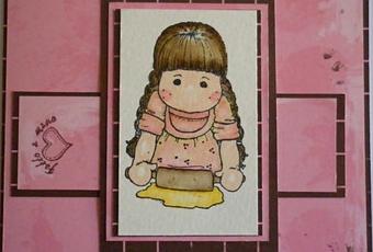 Penso che questa card la utilizzerò quando farò qualche torta da portare a casa di qualche amica, ed è per questo che ho scelto la scritta “fatto a mano”, così si potrà riferire sia al dolce che alla card stessa.