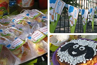 Elena ha preparato un buffet tutto a tema con bandierine, dolcetti e torta a forma di pecorella!
