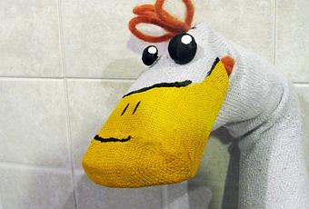 Una paperella come calza ... della befana!   A Davide piace moltissimo una canzone in cui ci sono due paperelle fatte con due calzini che cantano. Ecco, per la befana troverà una calza da utilizzare come paperella... Conterrà tante cose buone da mangiare per le sue prossime merende e colazioni: monoporzioni di frutta secca, wafer e cioccolato, senza esagerare ovviamente! E in più un paio di libri!   Per realizzarla non ho usato altro che un vecchio calzino di spugna bianca, dei bottoni, del cordino arancio e dell'acrilico per colorare il becco giallo, gli occhi e le rifiniture nere.   Per renderla più semplice da utilizzare ho inserito del cartone (recuperato da una scatola di biscotti). Così il becco rimane più solido.   Con questa calza partecipo al contest di Serena e Floriana