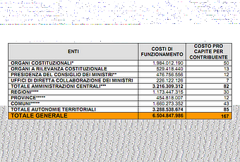 - 2 miliardi per il funzionamento di Presidenza della Repubblica, Camera dei Deputati, Senato della Repubblica e Corte Costituzionale