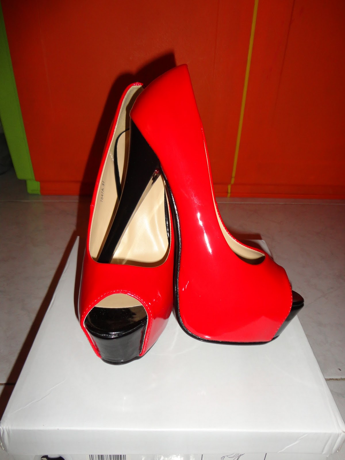 Sono delle bellissime decoltè rosse laccate con tacco e plateau nero ...Si descrivono da sole ... bellissime , particolarissime , comodissime , perfette!!!
