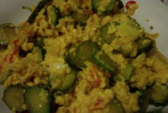 - In un tegame, in un bagnomaria caldo, ma non bollente, fate sciogliere il burro, unitevi le uova sbattute e sempre mescolando con una frusta, fatele cuocere per pochi minuti affinchè si rapprendano pur restando cremose.