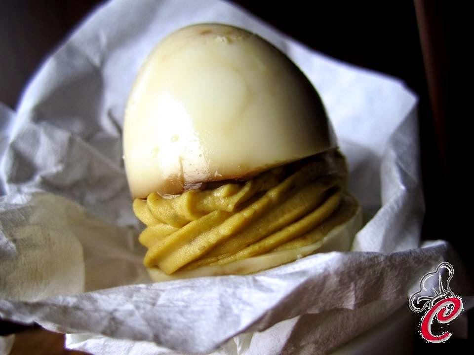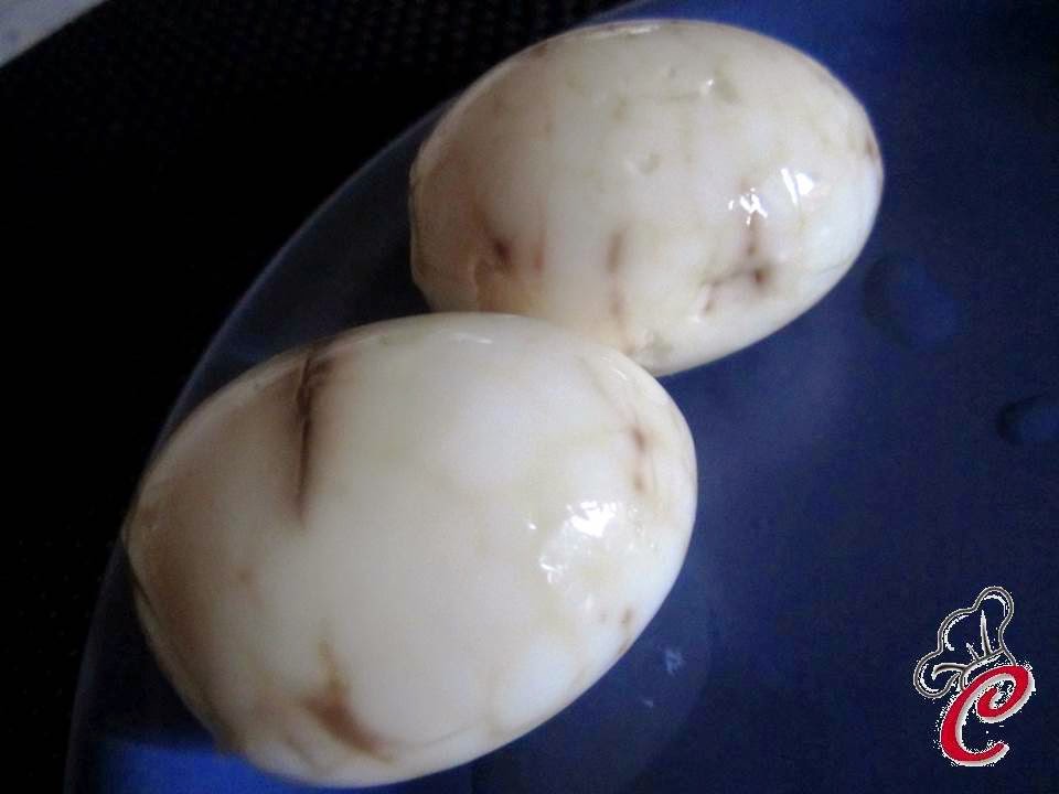 Trascorso il tempo estraete le uova dalla marinatura e sgusciatele.Apritele a metà ed estraete il tuorlo.