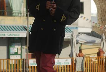 Naima: Pantalone capri da vintage, canotta, giacca da uomo e cappello della marina, scarpe Bruno Magli, anelli vergine e polpo Joseph Meo, ciondolo orologio da vintage _ Luisa:Vestito - , ballerine - _ Pasquale:Maglietta -, pantalone -, cintura - _
