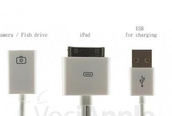 Questo ci permette di collegare il nostro iPad ad un altro iPhone,iPod touch, una qualsiasi fotocamera esterna o meglio ancora una penna USB contenente la cartella chiamata DCIM, dove tutte le foto o video presenti al suo interno potranno tranquillamente essere salvate nel nostro iPad. La chicca di questo accessorio è che ha anche la porta USB per ricaricare il nostro iPad mentre importiamo i file.