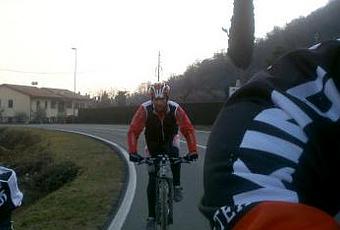 Superato il cancello Anonimo viene "folgorato" dalla luce cosmica del "Ganassa" e parte in modalità "gara" e mi stacca con Lucaling che rimane per un pò alla mia ruota, poi anche lui viene "baciato" dalla stessa "luce" e si mette in caccia dell'Anonimo che riesce a raggiungere e con il quale si darà battaglia fino alla fine (pare abbia vinto l'Anonimo...). Io assisto come uno spettatore al cinema e salgo del mio passo senza accellerate. Arrivo in cima e li trovo felici con l'Anonimo che tenta (senza successo) di mandare un sms al suo DS. E' la volta della "discesa delle albicocche" che raggiungiamo poco dopo e che affrontiamo con bello slancio (domani on line il video...non mancate).