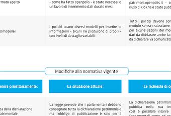 In fatto di dichiarazioni patrimoniali, una piena trasparenza non può che essere associata a un livello di apertura di informazioni superiore agli obblighi di legge, già laschi in partenza, spesso disattesi, e più orientati alla tutela della privacy che alla diffusione di informazioni potenzialmente di interesse pubblico. Come succede per esempio per i finanziatori della campagna elettorale, o per le attività e i beni intestati ai familiari.