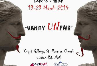 In questa edizione della Mostra Internazionale d'Arte Contemporanea, con il motto "Quando il materiale stesso si rigenera come arte ", Art Café’ London vuole dare agli artisti vincitori dell'edizione italiana il nuovo compito di interpretare la vanità usando la loro creatività e sensibilità per svelare tutta le contraddizioni della società contemporanea. Attraverso ogni espressione, significato e l'uso di qualsiasi tipo di materiali, Vanity Unfair vuole incantare il suo pubblico con una selezione variegata di arte, pittura, fotografie, installazioni e performance musicali capaci di rendere tangibili le connotazioni della vanità date dai diversi artisti. La mostra organizzata da Art Cafè Londra ospitera’ anche le opera del movimento Desperate Artwives contribuendo al sostegno della loro cause sociale, e Greo Photo che sara’ autore della perfomance, Vanity Chair Experience, coinvolgendo lo spettatore in un inaspettato momento di vanità.