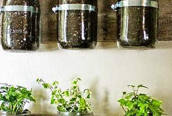 1. Un giardino appeso: procuratevi un asse di legno e delle fascette stringitubi in metallo che avvitaterete all’asse a debita distanza l'una dall'altra. Poi fissate alle fascette un vasetto di vetro. A questo punto non vi resta che riempirlo di terra ed avrete creato un giardino in casa per le spezie o per i fiori; ricordatevi solo di non bagnarli molto visto che i vasi di vetro non hanno il foro sul fondo per lo scarico dell’acqua in eccesso.