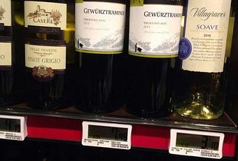 Ho appena finito di pubblicare il post precedente e da un Ipermercato di Roma qualcuno mi gira queste immagini. Un Teroldego Rotaliano 2013 (Mezzacorona) a 6 euro e un Gewürztraminer 2014 (Mezzacorona) a 7,50 euro. Entrambe le referenze Trentino Doc. Mi sembra che qui ci si avvicini di più ad un prezzo equo che può soddisfare sia la filiera produttiva e sia quella commerciale. E anche il consumatore.