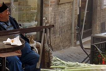 In tutto questo c’era un vecchietto che vedete in foto, il quale vendeva come potete notare i prodotti della terra, quelli di stagione o quasi, cardi, castagne arrosto, peperoncini, aglio, e altri prodotti … se non mi sbaglio credo fosse l’unico che vendeva prodotti del genere, per altro alquanto ignorato dai molti passanti.
