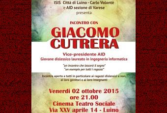 L’associazione “inForm@DSA Luino” ONLUS venerdì 2 ottobre dalle ore 21, presso il Cinema Teatro Sociale di Luino, ospiterà Giacomo Cutrera, vice-presidente dell’Associazione Italiana Dislessia. Giacomo Cutrera è un giovane ragazzo dislessico, laureato in ingegneria informatica, che da anni gira l’Italia per “raccontare e raccontarsi” nei teatri così come in TV, parlerà del mondo dei Disturbi Specifici di Apprendimento, presentando il suo libro “Demone Bianco”. L’evento è stato organizzato in collaborazione con la Dirigente dell’I.S.I.S. “Carlo Volontè” di Luino, la professoressa Lorena Cesarin, e l’Associazione Italiana Dislessia di Varese.