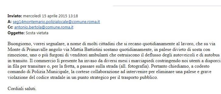 Una deduzione che non è solo la nostra se è vero come è vero che tutte le illegalità circostanti erano state segnalate (come abbiamo dimostrato qui) sia dai cittadini che dalle autorità stesse. In particolare guardate qua sopra il rimpallo di responsabilità e di scartoffie tra uffici dell'amministrazione riguardo alla sosta abusiva dei furgoni nella zona di Battistini. Un ufficio avvisa un altro, l'altro ufficio rimanda al primo e i furgoni - sapientemente parcheggiati sulla linea di confine tra due amministrazioni - rimangono indisturbati a rendere l'incrocio un luogo insicuro. Ci sono le carte, ci sono le date. Ci sono i dirigenti comunali da 110mila euro l'anno di stipendio pagato dai contribuenti. E ci sono i problemi che non vengono risolti. In una città dove i diritti intoccabili della casta dei bancarellari ambulanti sembrano andare ben oltre la dignità della vita umana stessa.