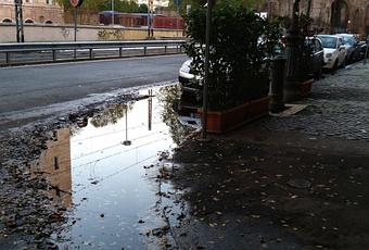 Non c’è una via di mezzo per il nasone a via Giolitti presso l’incrocio con viale Manzoni : o rimane all’asciutto per mesi o allaga la strada. Già ci già siamo occupati di questa fontanella più volte (29/09/14 e 17/10/14) segno di un guasto che non sono mai riusciti a riparare. Ma in questi giorni la situazione era diventata veramente disastrosa : ecco come era ridotta la porzione di strada interessata dal problema. Da notare che l’acqua aveva anche superato il gradino del marciapiede e dunque, allertata da numerose chiamate il 4 dicembre l’ACEA ha chiuso il nasone e chissà per quanto tempo rimarrà in questo stato. Possibile che non si riesca a risolvere il problema? Molto probabilmente entreranno in ballo anche le radici dell’albero vicino che in qualche modo ostruiscono lo scarico dell’acqua ma è assurdo offrire simili spettacoli specie ora in vista del Giubileo con tutti gli alberghi e ristoranti della zona.