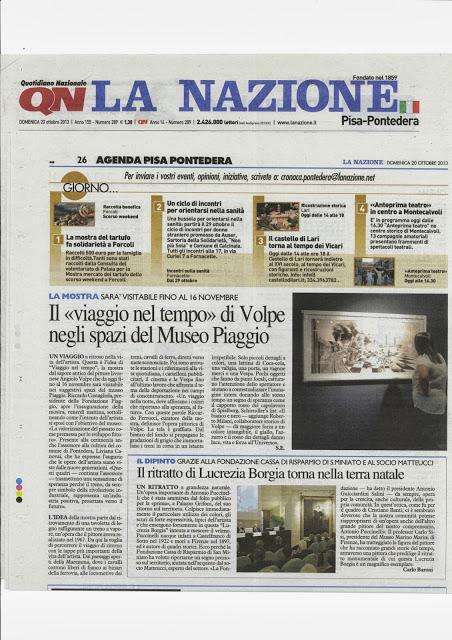 Un po' di rassegna stampa cartacea a proposito di "Viaggio nel Tempo", la personale di Angiolo Volpe al Museo Piaggio... vedi: http://lastanzaprivatadellarte.blogspot.it/2013/10/angiolo-volpe-viaggio-nel-tempo-al.html