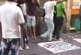 Ci preoccupiamo per le misure di sicurezza, per il terrorismo, per l'Isis. Ma quanto è ridicola questa attenzione quando non c'è un solo mq di territorio cittadino che non sia totalmente fuori controllo? Questo piccolo video ritrae una delle scene che più comunemente si ravvisano per le strade del centro: benché i vu cumprà siano gestiti dai cartelli criminali e che quindi, come si percepisce dal loro approccio commerciale, non siano assolutamente uno in concorrenza con l'altro, ogni tanto qualche alterco capita.Questi due signori hanno seguitato a litigare animatamente, davanti a turisti esterrefatti, per una buona mezzora. Siamo a Via delle Muratte ovvero nel cuore della city di Roma, ai piedi delle sedi dei tre principali istituti di credito italiani, a 50 metri da Palazzo Chigi e a metà strada tra Pantheon e Fontana di Trevi ovvero nel tragitto turistico più battuto d'Italia e uno dei più battuti del mondo. Via delle Muratte se fosse in qualsiasi altra città d'occidente sarebbe non solo un autentico salotto, ma soprattutto una delle aree più rigidamente controllate, guardate a vista dalle forze dell'ordine. Qui il cuore della città appare essere di proprietà degli abusivi e delle mafie che li gestiscono.