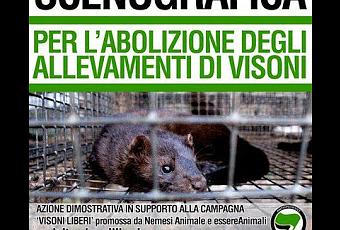 Il collettivo Antispecisti Libertari Brescia e il Comitato Montichiari contro Green Hill hanno organizzato una protesta scenografica contro l’industria della pelliccia in supporto alla campagna Visoniliberi, promossa da Essere Animali e Nemesi Animale. Queste organizzazioni hanno diffuso un’investigazione, frutto di un lavoro di documentazione durato ben 18 mesi, che svela le condizioni di prigionia, di schiavitù, di detenzione e di sofferenza di migliaia di visoni. In Italia sono attivi e conosciuti 17 allevamenti di visoni, due di questi operano in provincia di Brescia.I prodotti derivati dallo sfruttamento animale sono perfettamente sostituibili con prodotti alternativi, fibre vegetali e sintetiche. Fate attenzione alle etichette: Dall’’8 maggio 2012 tutti i capi con pelliccia, piume o pelle devono avere la dicitura ““Contiene parti non tessili di origine animale”.” Spesso il pelo viene lavorato, colorato e rasato per renderlo irriconoscibile e il prezzo non proibitivo del capo può indurre a pensare che l’inserto di pelliccia sia finto, ma non è sempre così. FIRMA LA PETIZIONE per l'abolizione degli allevamenti di animali da pelliccia, oppure prendi parte direttamente alle iniziative o alle proteste, o ancora puoi aiutare tutte queste povere creature diffondendo nella tua città il MATERIALE INFORMATIVO GRATUITO.