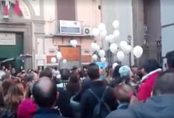 La folla ha salutato per l’ultima volta Rosario Fioretti fuori la Chiesa di Santa Caterina a Chiaia, con un lungo applauso e tanti palloncini bianchi.