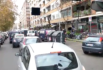 Un video che davvero dice tutto. C'è tutto in questi tre minuti di Circonvallazione Ostiense ripresi dalla cabina di guida di un bus Atac. Arredo urbano inesistente. Lamiere dovunque, in ogni spazio disponibile. Pare di stare in una città di quaranta anni fa. Distese di macchine completamente informi. Non c'è un solo mq di città ordinata, rispettata, pulita, corretta. Non c'è una striscia pedonale rispettata, non c'è un percorso per disabili, bambini, mamme con passeggino che sia civile. I marciapiedi sono distrutti di bancarelle in maniera indecente. Le bancarelle utilizzano i furgoni come magazzini abusivi, buttati in mezzo alla strada. I pedoni spuntano da tutte le parti. A Roma non ci sono 100 morti ammazzati al giorno per le strade solo perché ormai tutti si sono ben abituati ad una situazione totalmente fuori controllo. Bisognerebbe domandarsi e riflettere su quanto tutto questo influisca sulle tasche degli utenti del trasporto pubblico, degli automobilisti coscenziosi, e dei cittadini in generale, perché la velocità commerciale o la velocità media ne risentono notevolmente, e la sicurezza pure.