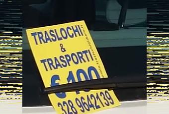 Video. Nel 2015 ancora stiamo coi volantini abusivi dei traslocatori abusivi attaccati sui tergicristalli. Nel 2015 !!!