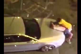 Ma alla vittima non basta e una volta accortosi che dalla parte opposta della strada c’è anche il complice del rapinatore, l’immigrato va verso l’auto dei due, rompe il finestrino cercando gli oggetti che gli erano stati sottratti, probabilmente cerca il telefonino da quello che si può capire dal video. I rapinatori provano a fermarlo, ma ricevono in cambio solo tantissimi pugni. Allora le vittime sono costrette a chiedere aiuto ai passanti e alle auto che transitano. Scena tra il serio e il faceto, e tuttavia un tentativo di scippo finito male, brutto esempio di violenza metropolitana.