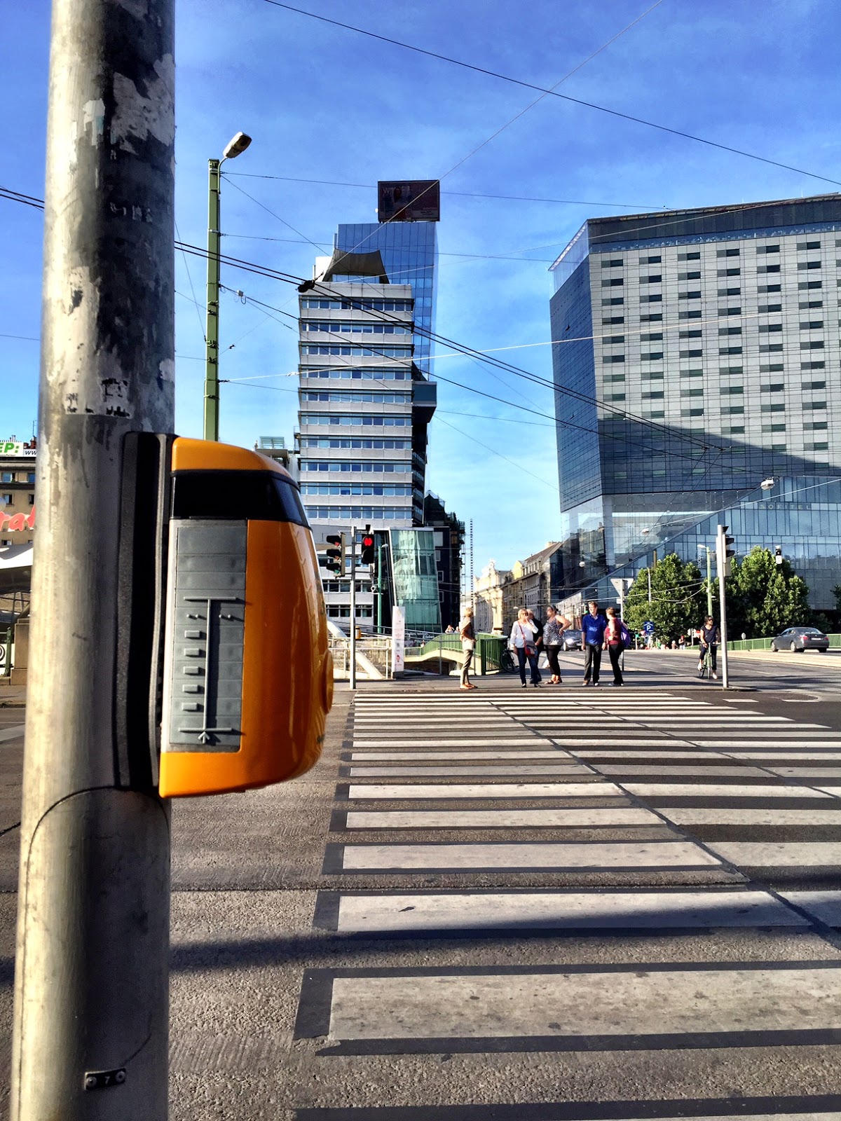Oltre alla tipologia di strisce pedonali, guardate l'onnipresente apparecchio per i non vedenti. Ha la descrizione perfetta di come è fatta la carreggiata (quante corsia in un senso, quante in un altro) e non se ne trova uno che non funzioni. Come è plausibile che un ipovedente abbia dei diritti in Austria e non li abbia più quando atterra in Italia. Che Europa è questa?