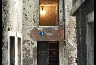 sto facendo della vera archeologia ultimamente! questa foto è del 1987 ed è stata scattata a Fiume (Rijeka) in quella che adesso è la Croazia e allora era la Jugoslavia, non ancora ex. i miei avevano un'amica che stava lì e che conoscevano da prima di sposarsi; tra l'altro in viaggio di nozze andarono proprio in Jugoslavia-non-ancora-ex. avendo questo duplice rapporto affettivo, capitò che ci tornarono e che portarono pure me. in questa occasione capitammo, non so come, in una zona di case che sembravano abbandonate; questa per esempio era messa male, eppure una luce era accesa, segno che abbandonata non poteva essere. in seguito, riguardando questa foto, ho sempre pensato alla speranza, che è come una lampadina accesa anche in mezzo alle macerie.