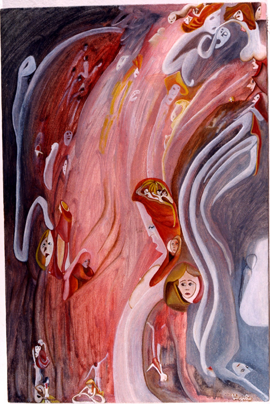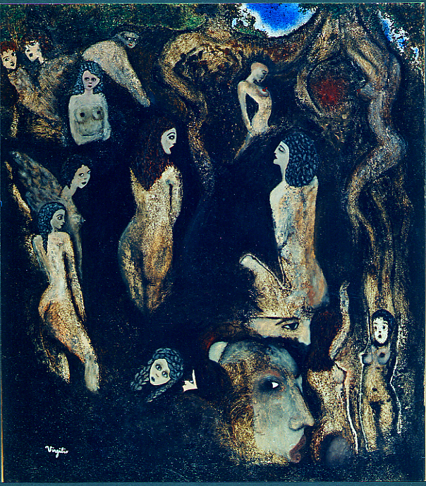 Virgilio ci accompagna nel mondo attraverso il vetro della sua lente artistica, indicando con il pennello la strada che conduce al centro, all'essenza.