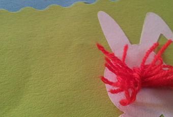 Di cosa si tratta? Il filo di lana mi è servito per ricreare un mini pon pon che sarà il codino del coniglietto, il vero protagonista del biglietto d’auguri. Il resto del biglietto è molto semplice da comporre, vi basterà usare un pò di fantasia e tanti colorati avanzi di cartoncino; vi lascio qui la nostra idea che però potete modificare a vostro piacimento o, se vi piace, copiare interamente.