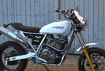 Abbiamo parlato della sorprendente Suzuki Big solo pochi giorni fa. Anche Volker Schmidt, in Germania, deve aver pensato che il suo grande mono meritasse qualcosa di meglio di "faticare in un enduro obeso". Così ha smontato completamente la moto sino al telaio e modificato la coda, ha scelto un serbatoio da 12 litri di una Yamaha SR500 e installato un sedile cafe racer. Ha poi aggiunto ruote supermotard (anteriore 3,5 x 17 x 120; posteriore 4,5 x 17 x 150). L'impianto elettrico è stato semplificato e nascosto sotto il serbatoio. La forcella di serie ha una nuova idraulica con molle Wilbers. Tutti i dettagli come la luce anteriore, frecce, manubrio, specchi, ecc sono stati cambiati. Il monocilindrico 727 cc canta attraverso uno scarico Devil in acciaio inox. Il risultato è questa street tracker da 170 kg che Volker trova fantastica da guidare sulle tortuose strade di campagna. (via Adventure Rider)