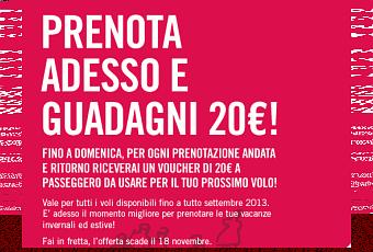 Fino a domenica per ogni prenotazione andata e ritorno riceverai un voucher di 20 euro a passeggero da usare per il tuo prossimo volo!