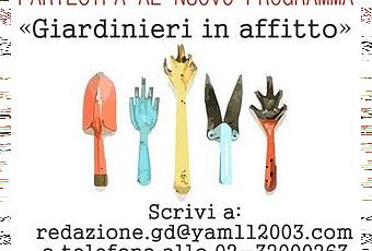 GIARDINIERI IN AFFITTO è un docu-reality in dieci puntate prodotto dalla YAM112003 (gruppo Endemol) e destinato alla programmazione del canale LEI, a partire da settembre.