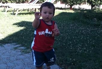 La bambina in questi giorni muove con incertezza i suoi primi passi assumendo quella andatura che mi ricorda tanto la camminata sulla luna degli astronauti.