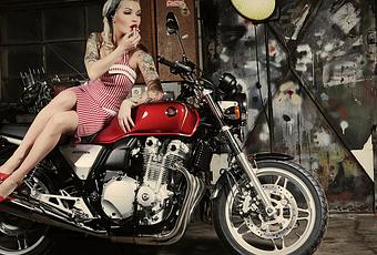 Wasabi French Buldočková in the garage CB1100 photoshoot via