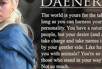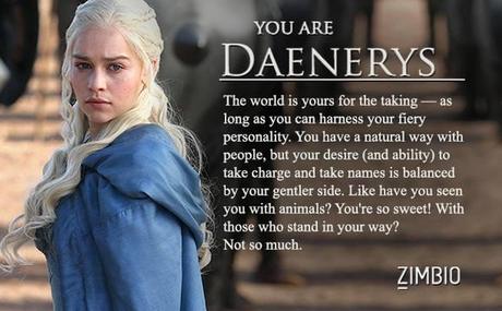 Da grande fan della serie TV firmata HBO e ancora più grande fan della saga scritta da G. R. R. Martin, non potevo certo farmi sfuggire questo quiz! Il risultato è quello qui sopra... se volete provarci anche voi, lo trovate qui: Which "Game of Thrones" character are you?